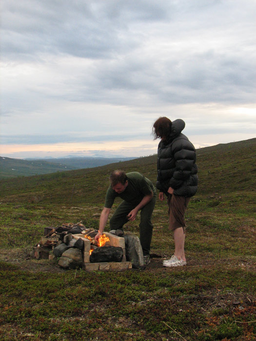 Tulet toki piti sytyttää. Huomaa Rastigaissat taustalla horisontissa.
